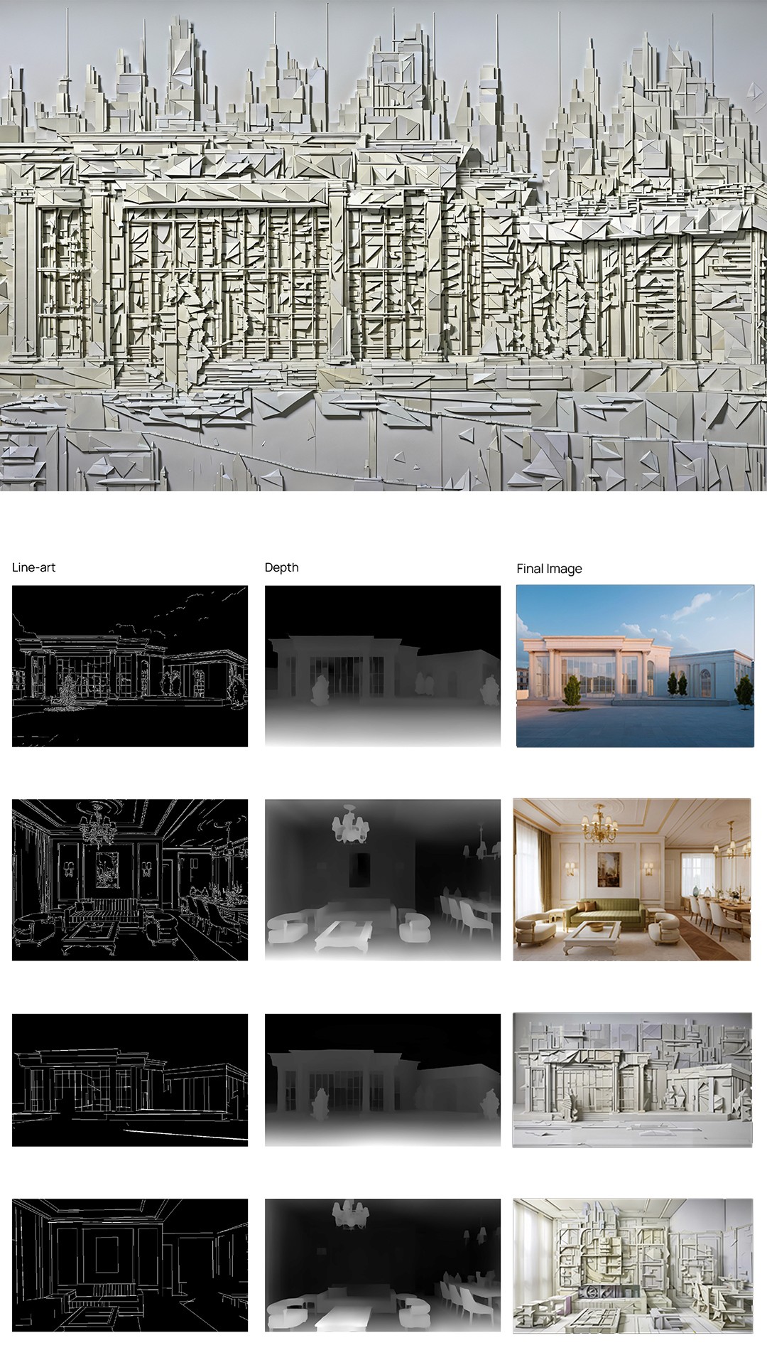 This workflow reveals new possibilities for architectural visualization, where AI becomes a dynamic tool for design exploration rather than just a rendering engine. The outputs showcase how neural networks can develop distinct visual languages when guided by design intent.