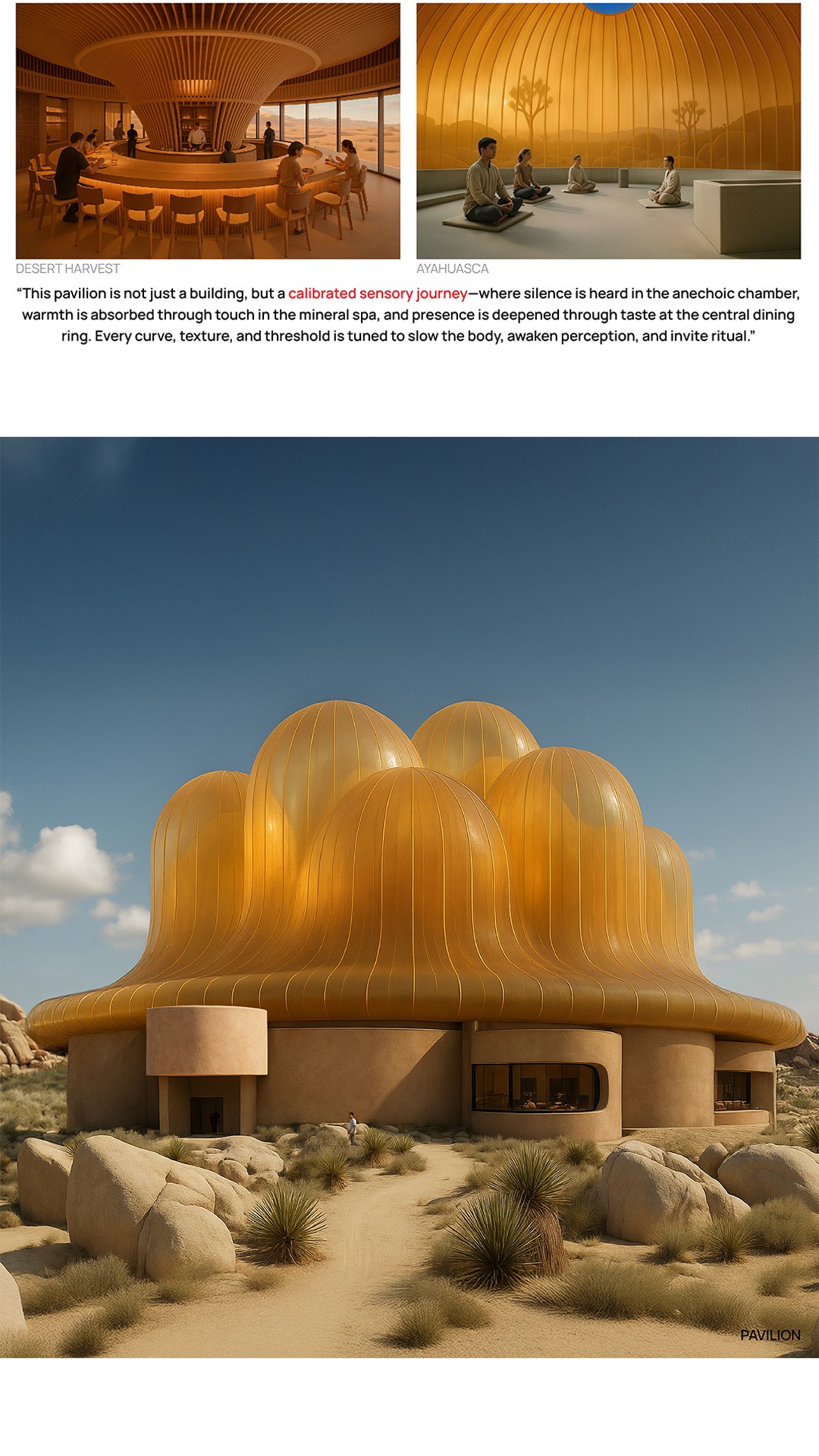 A luxury wellness retreat that challenges the sterile clinical model by positioning the built environment as an active healing participant. ONAYA explores sensory architecture to unlock deeper states of consciousness through intentional activation and suppression of the five senses.